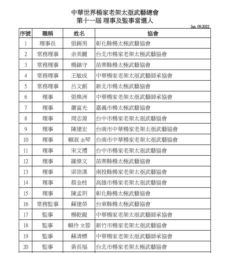 2022/01 理監事名單更新如下: