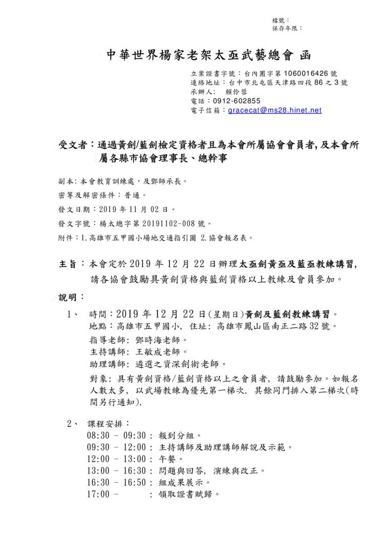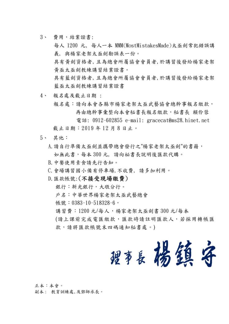楊家太極拳、刀、劍、槍共有四個項目,合稱為「楊太極武藝」 — World Yang TaiJi Classical Martial Arts Federation
